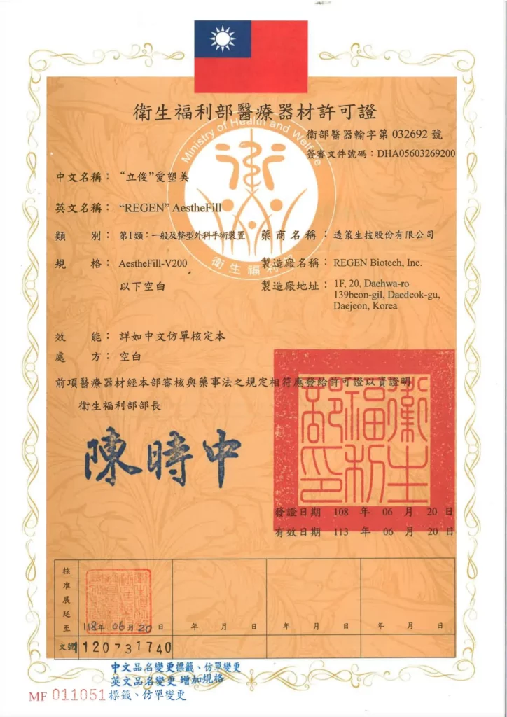 2. 少數敏感肌膚因注射物質而產生敏感性丘疹及結節,治療前須由專業醫師評估及指示。