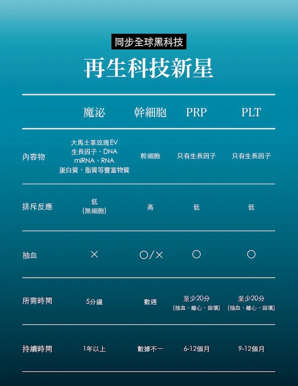 A:冷凍乾燥瓶除了EV粉末外,還含有多種活性成分,如 5 種生長因子、6 種胜肽、穀胱甘肽等 。玻尿酸混合液則還有 4 種生長因子等,能與粉末瓶發揮最大協同效應,透過 ALL-IN-ONE 方式,全面改善肌膚問題 。