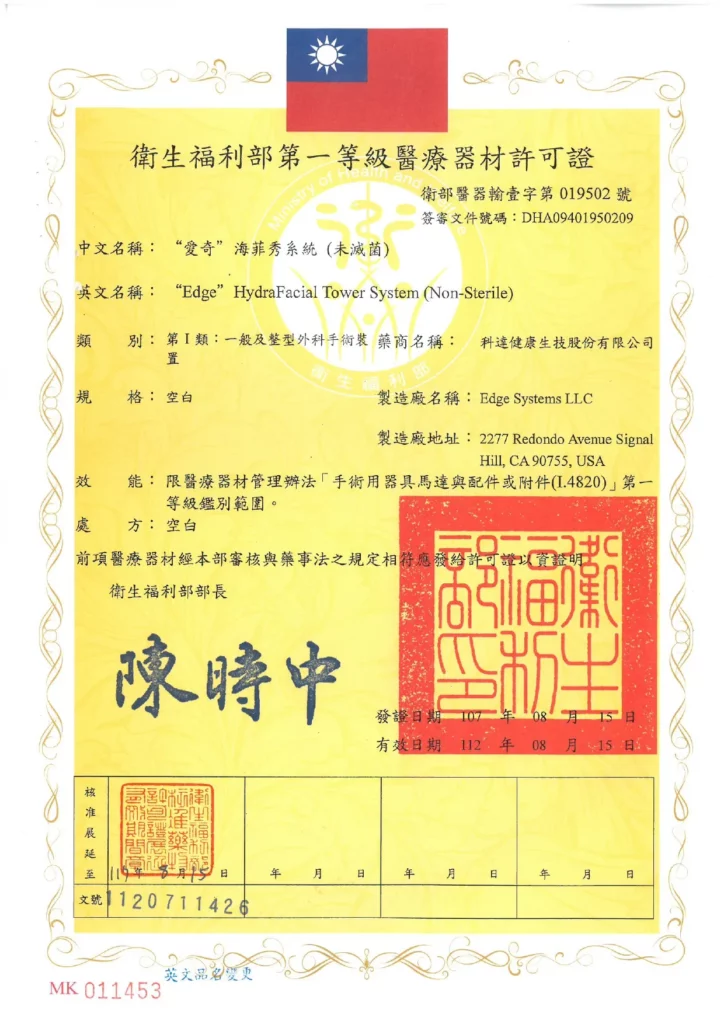 • 美國FDA許可證及台灣一級醫療器材許可證
