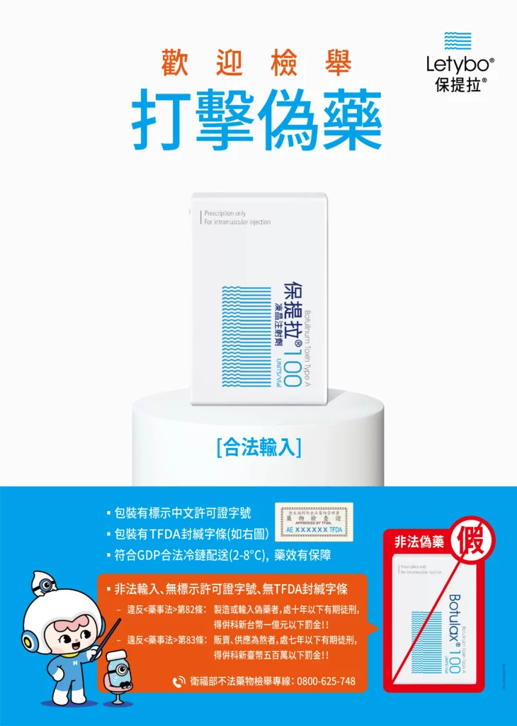 韓國Letybo肉毒俗稱保提拉肉毒,在韓國市占率最高的,由韓國製造,2019年台灣衛福部核准上市。保提拉含有95%以上的19S有效蛋白質,效果更為穩定,且無副作用。無論除皺撫紋或是平滑肌肉曲線,都能與國際大廠的優異表現勢均力敵。注射肉毒時針孔微細,療程時間較短、不影響日常生活作息,免動刀式處置,安全度較高,而且適合亞洲人。