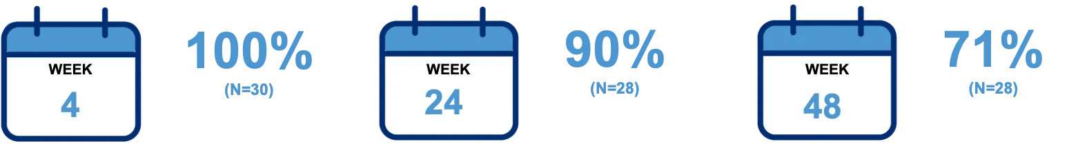 患者自評(Subject) GAIS: 1個程度改善的人數百分比(雙唇)