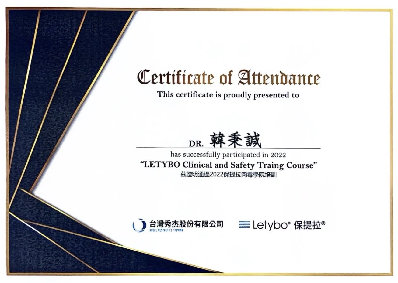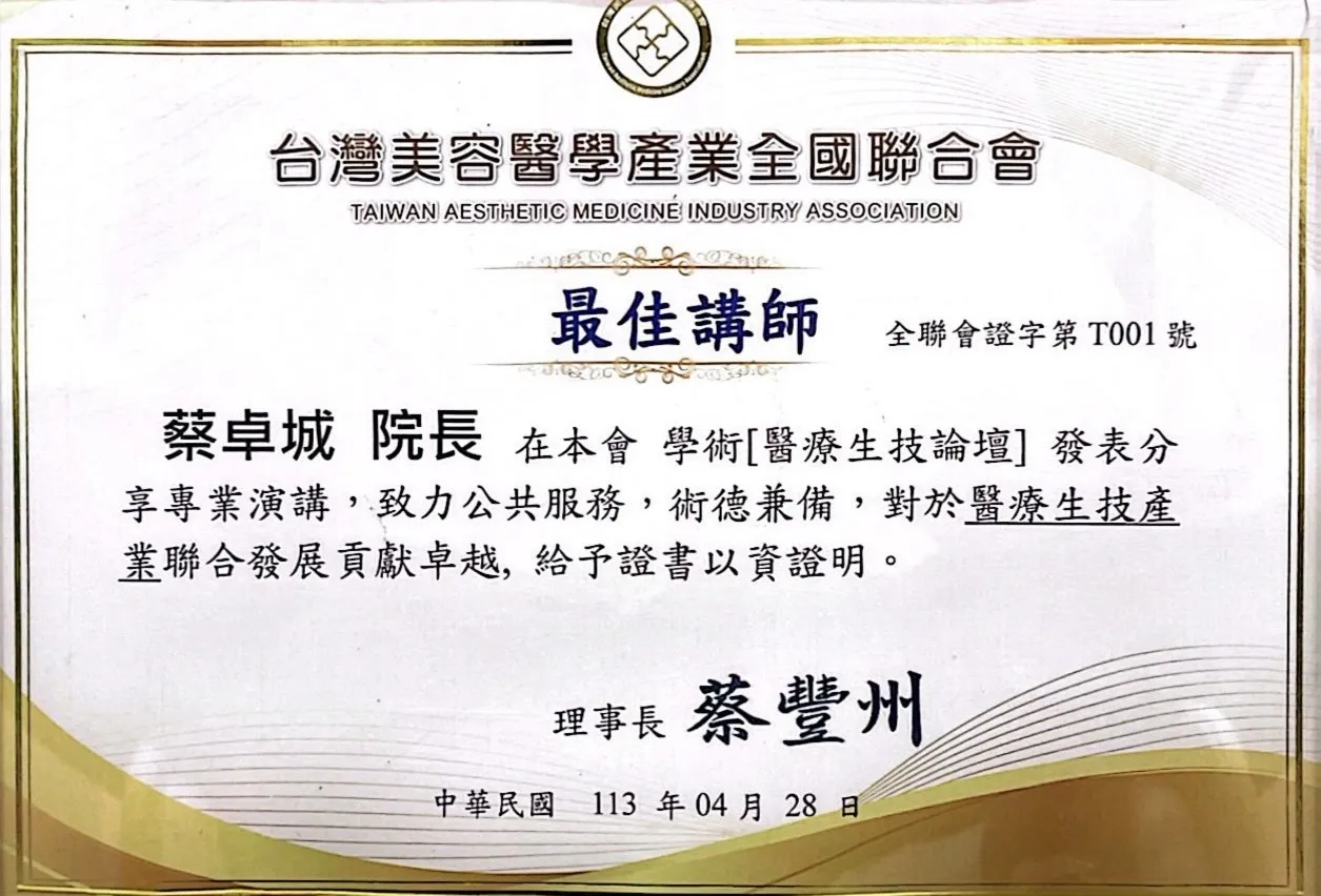 韓國原廠肉毒及玻尿酸認證醫師及指定講師