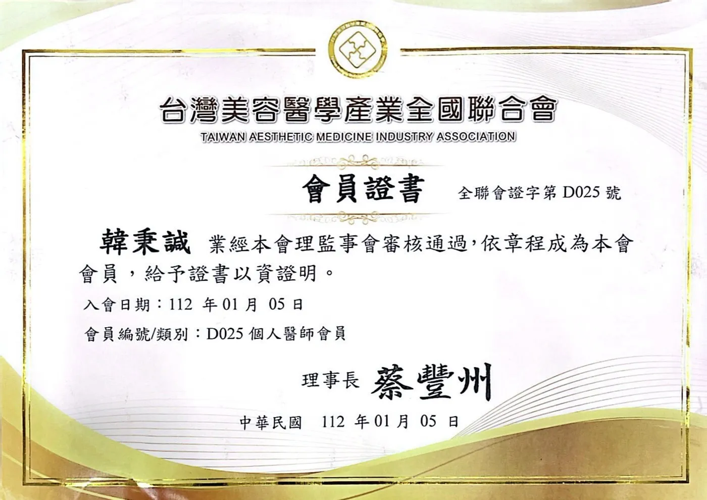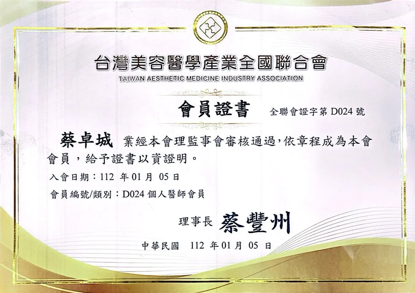 中華民國美容醫學醫學會會員