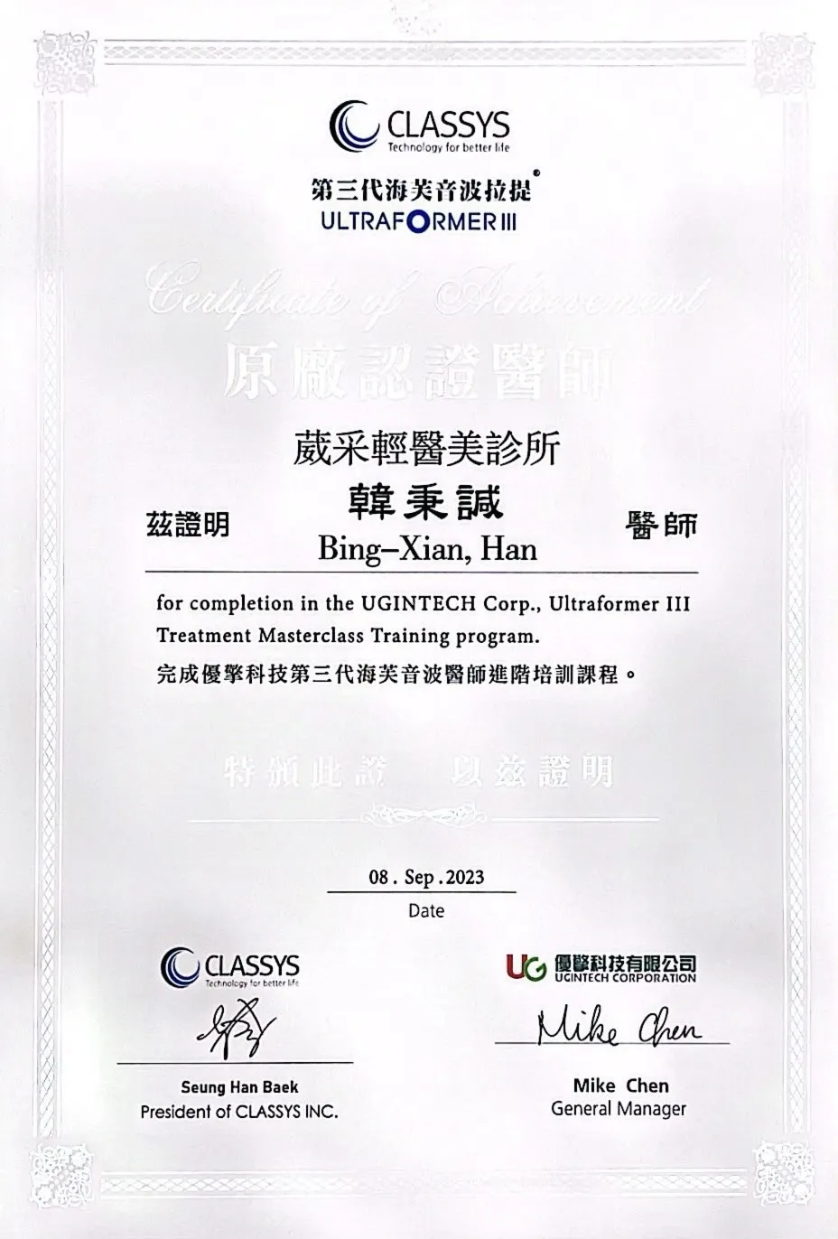 Ultraformer lll 第三代海芙音波醫師認證