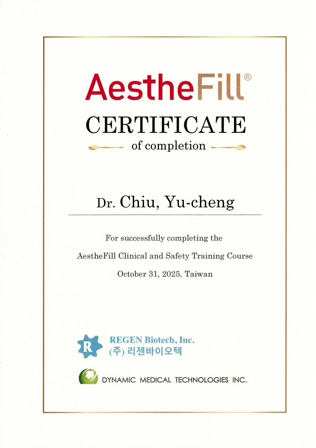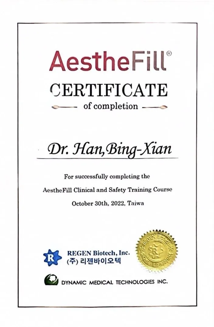 Aesthefill 艾麗斯注射醫師認證