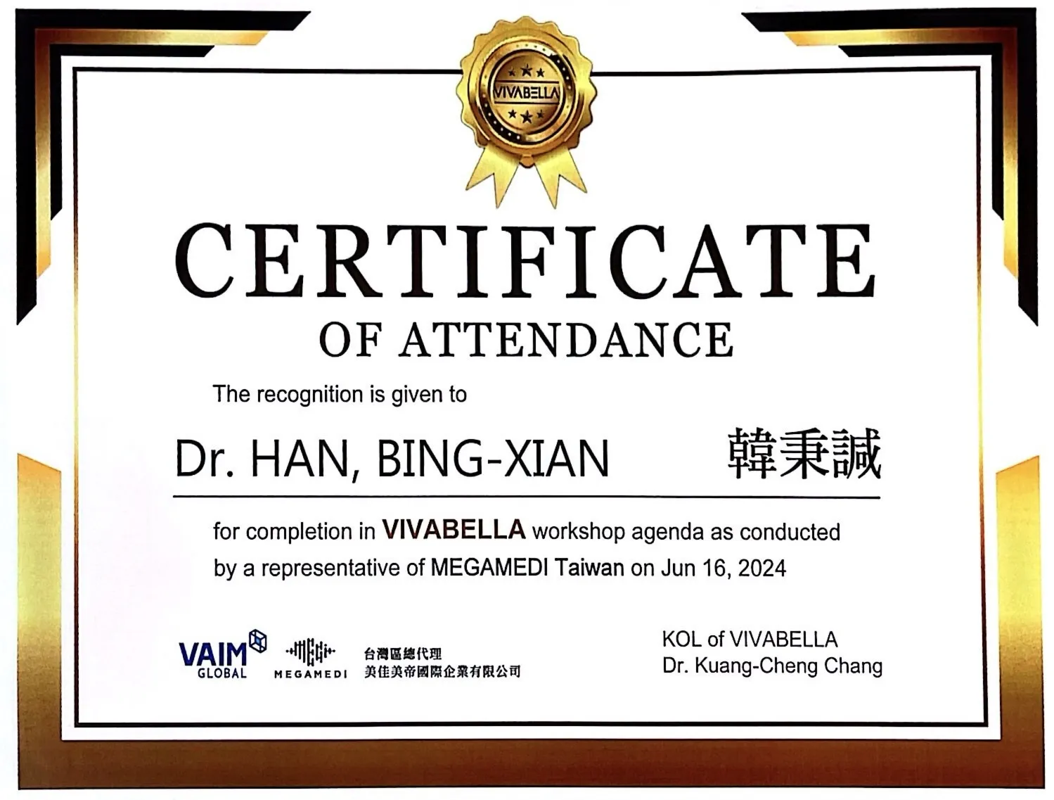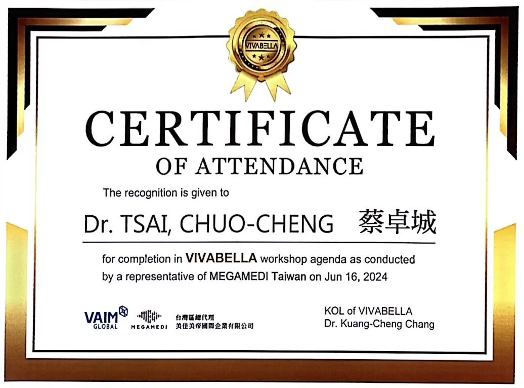 VIVABELLA薇貝拉醫師認證書