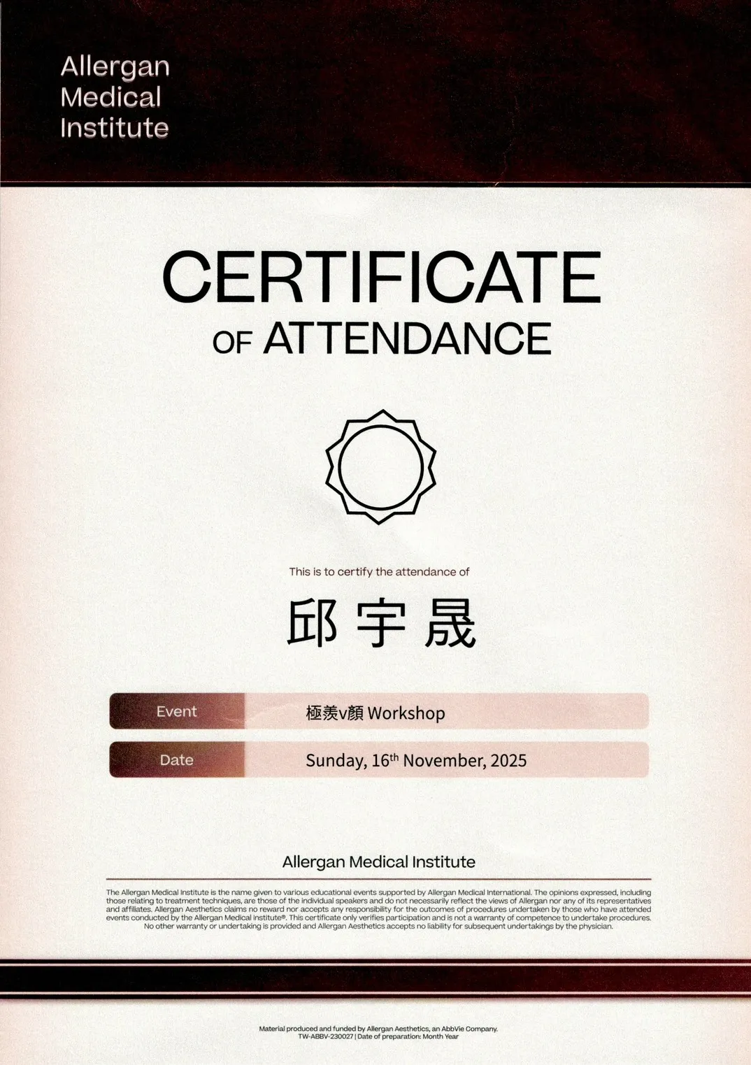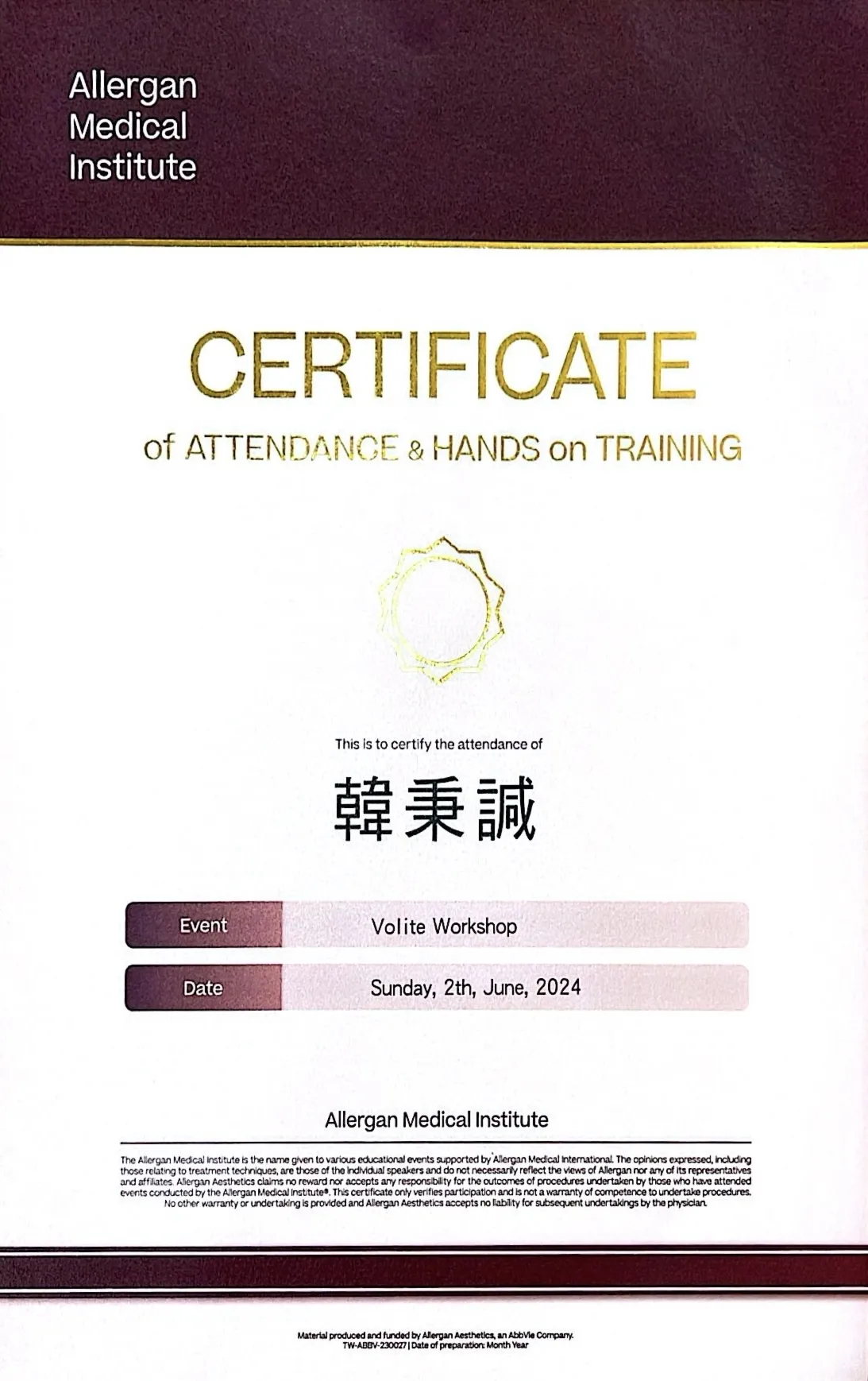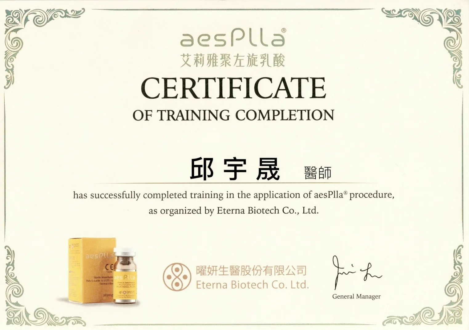 Aesthefill(艾麗斯)培訓證書