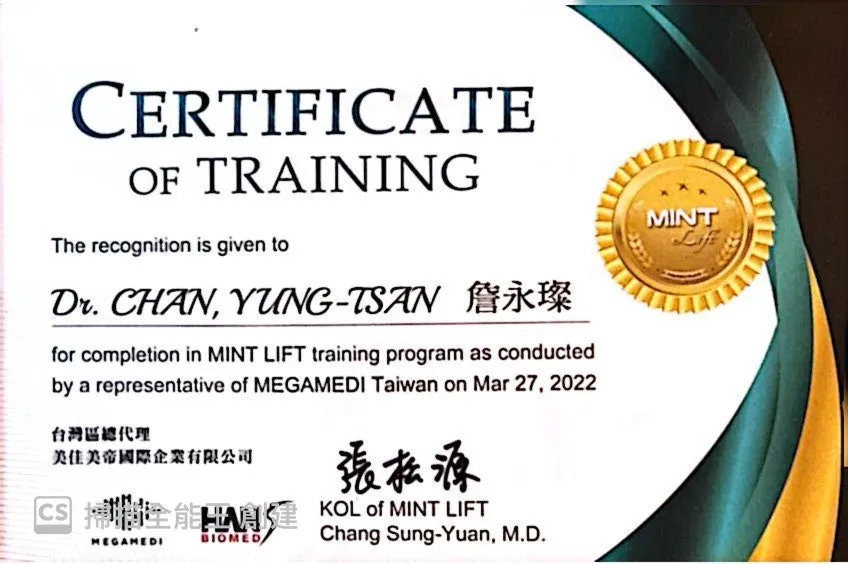 蛇牙線原廠受訓證書